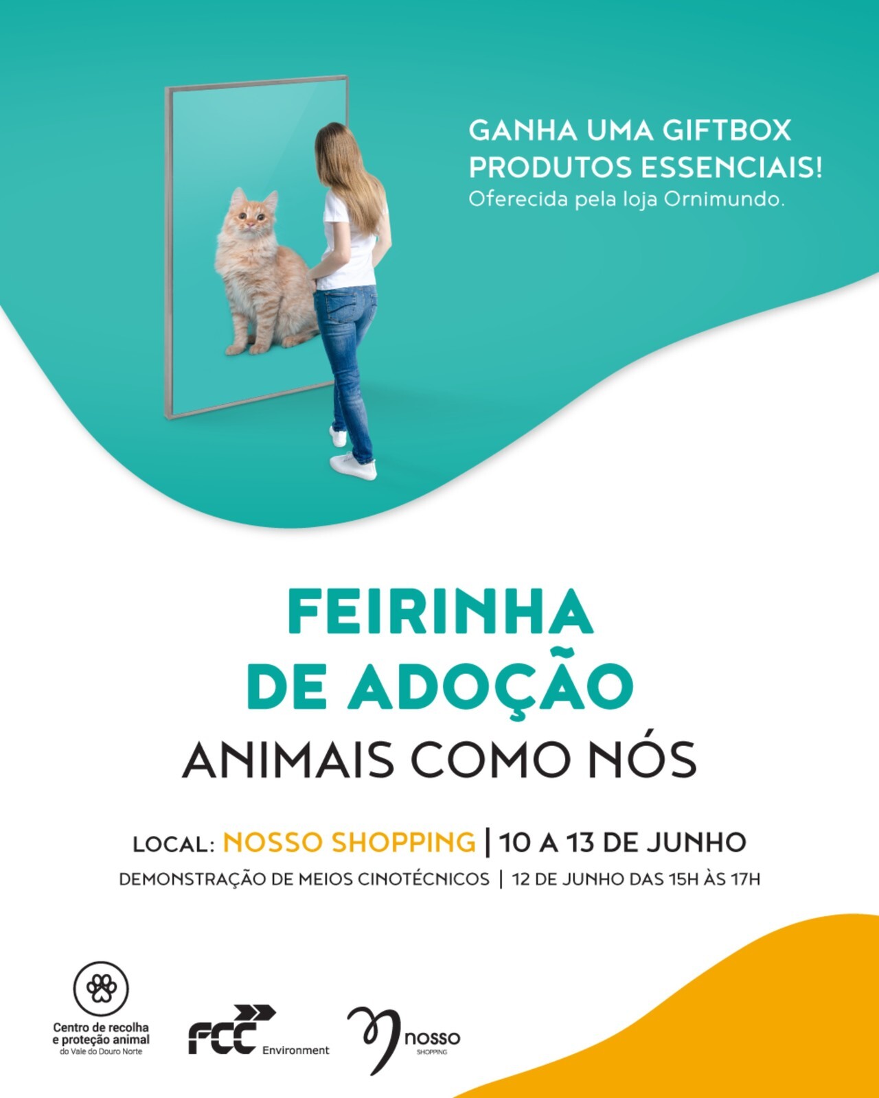 No dia 12 de junho, das 15h00 às 17h00, o evento contará também com a presença especial da Guarda Nacional Republicana (GNR) para a realização de uma demonstração de Meios Cinotécnicos, uma ação integrada que tem como propósito promover a importância do treino canino e como este poderá ser crucial na adoção de alguns animais de estimação. A Ornimundo aliou-se a esta iniciativa e irá disponibilizar, para quem adotar, uma GiftBox que contém alguns produtos essenciais para o animal de estimação. Comedouros, snacks, brinquedos e ainda um vale no valor de 5€ para descontar em artigos da loja, são alguns dos artigos que irão ser oferecidos.