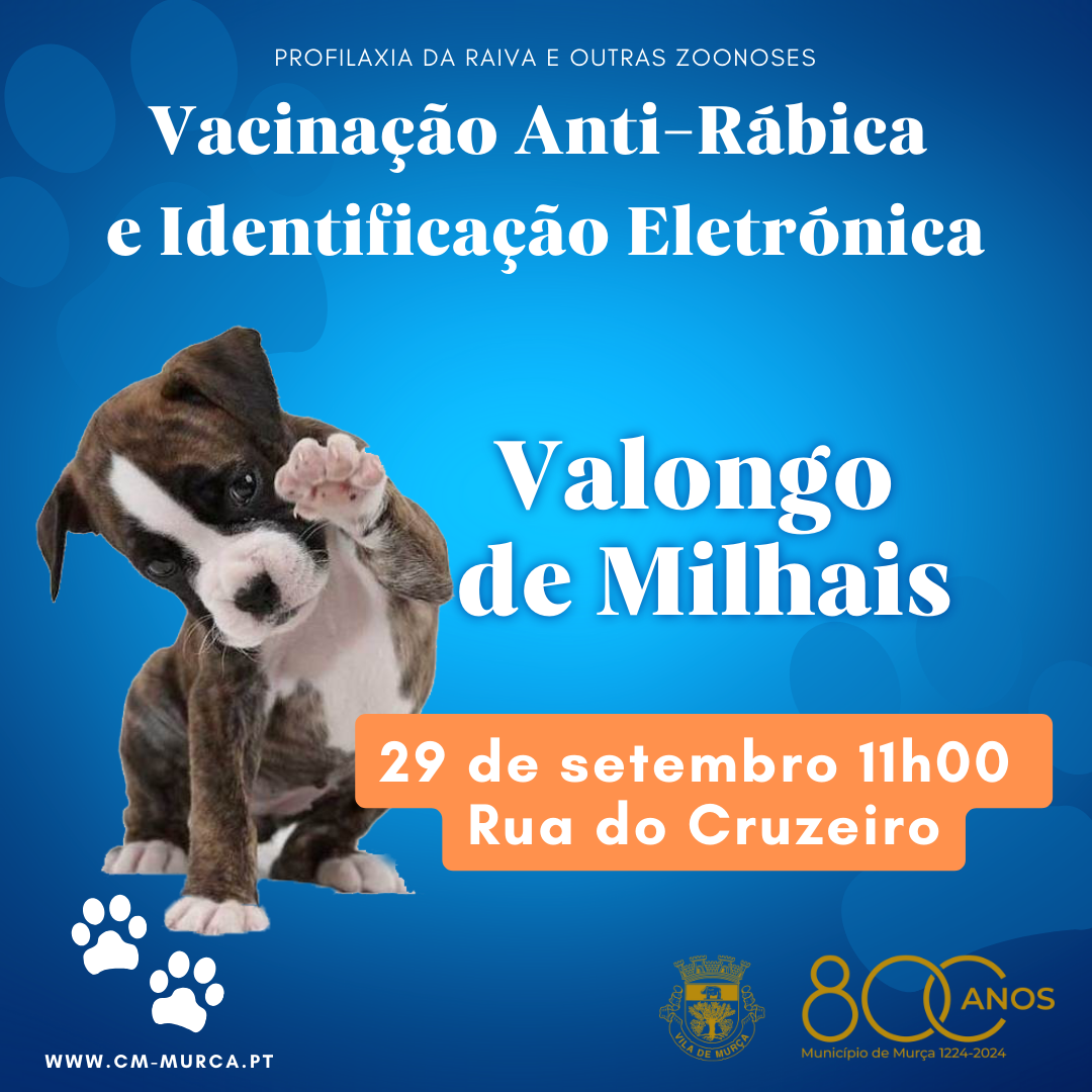 Informação: Vacinação Anti-Rábica e Identificação Eletrónica 2024 na Freguesia de Valongo de Milhais