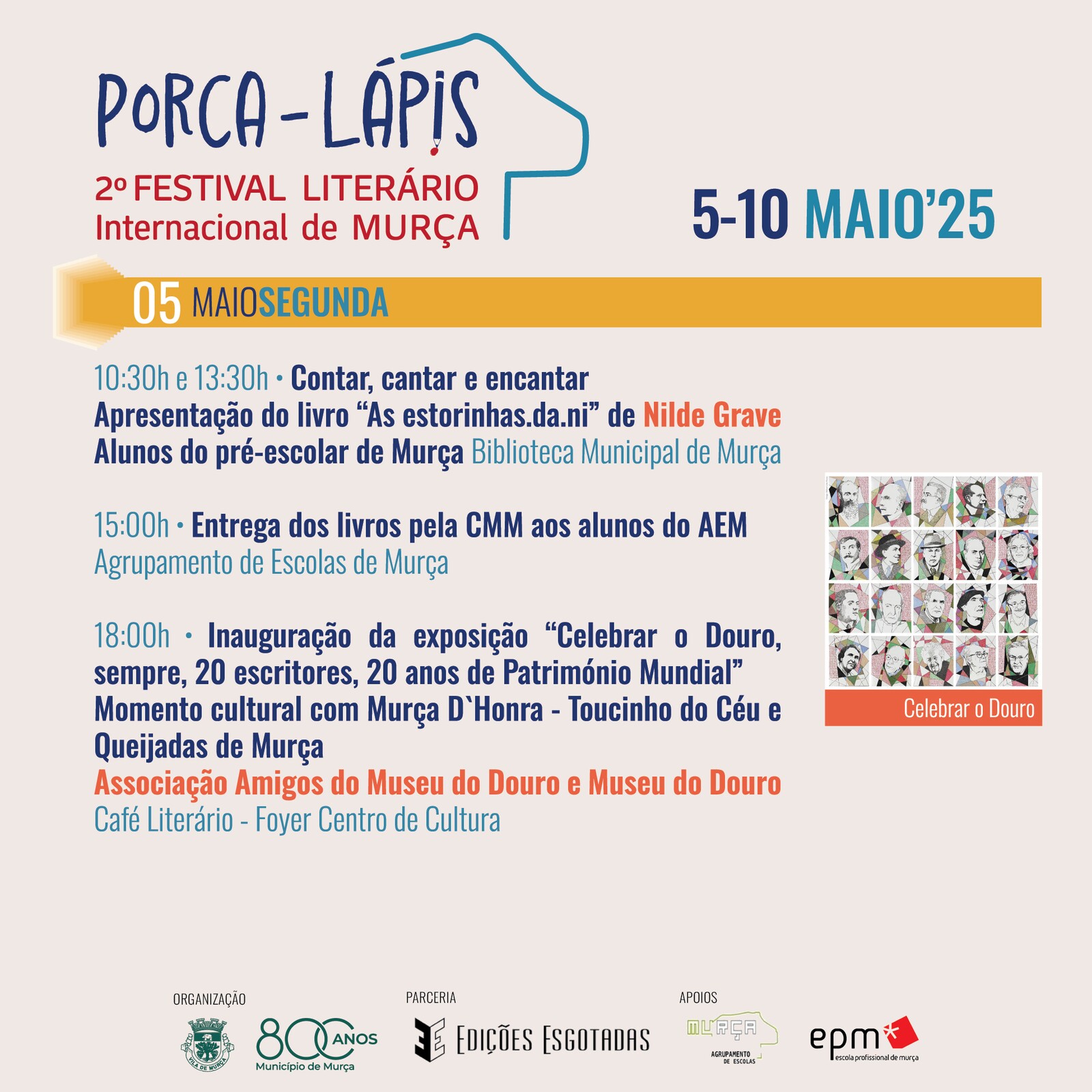 O Município de Murça promove em maio, o II Festival Literário Internacional de Murça, designado "𝙋𝙤𝙧𝙘𝙖 𝙇𝙖́𝙥𝙞𝙨".