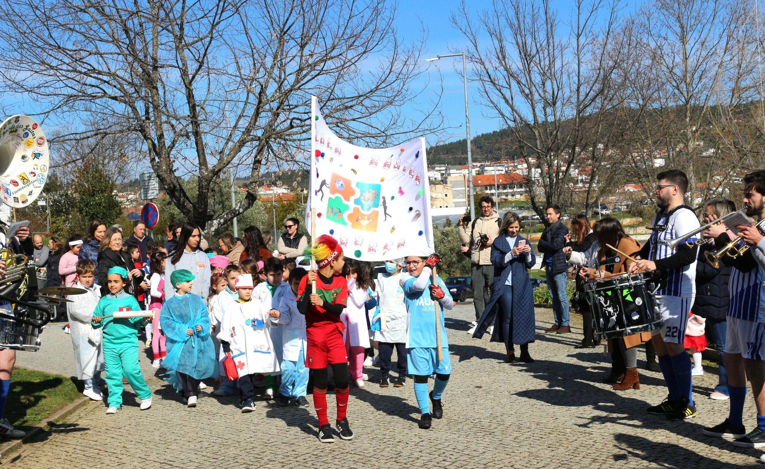 Figurantes de todas as idades, do Centro Escolar, do Jardim de Infância da Santa Casa da Misericórdia, CAARPD de Murça, vestiram-se a rigor para participar no tradicional desfile de Carnaval.