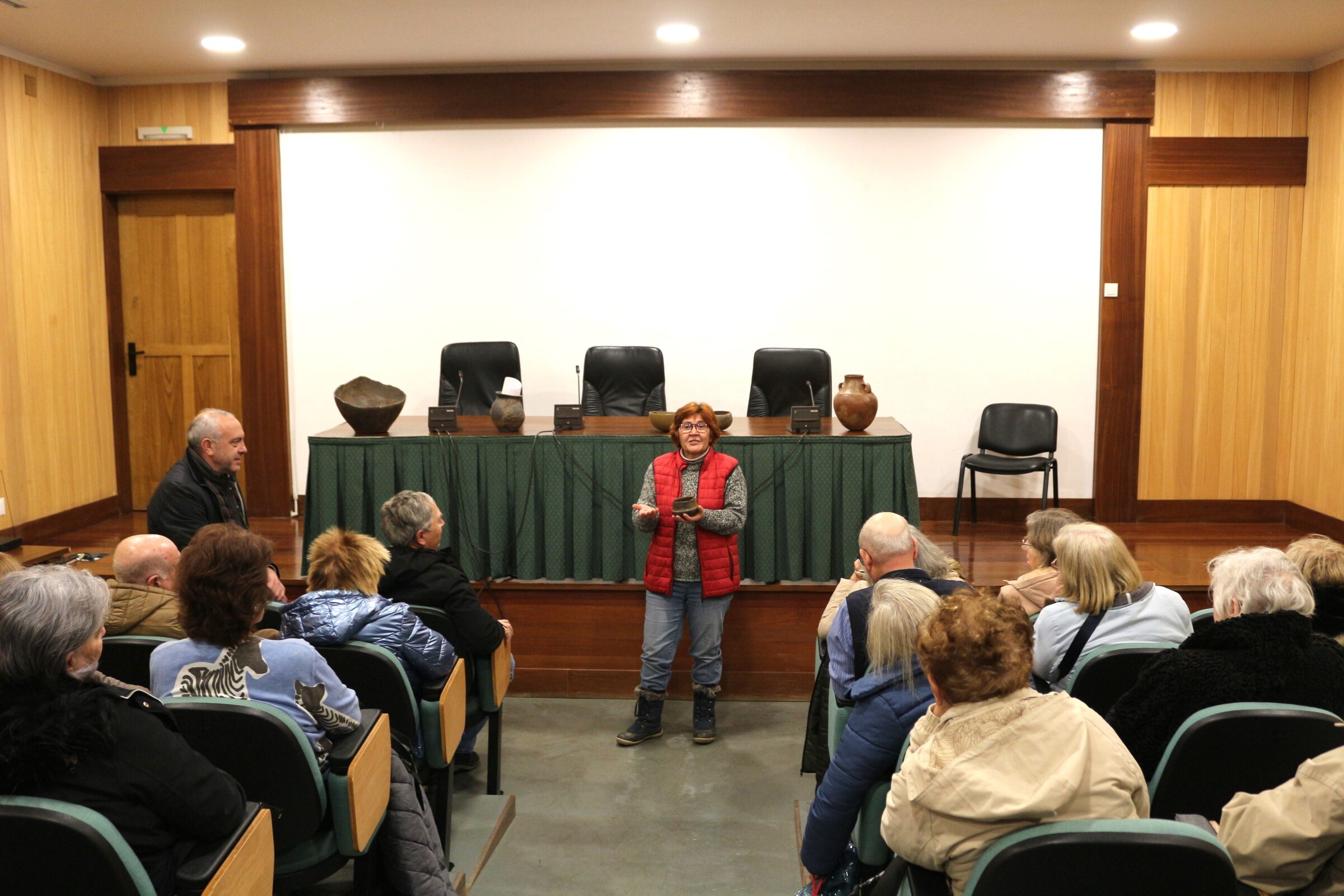 A Professora Maria Jesus Sanches foi a anfitriã que deu as explicações e a contextualização histórica-arqueológica do município, nomeadamente com as intenções científicas e académicas para os próximos anos.