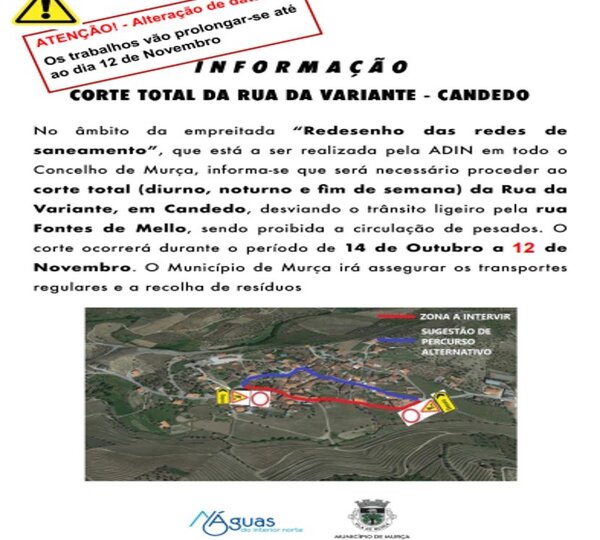 31 OutubroAviso: Prolongamento do corte total da Rua da Variante em Candedo até 12 de ...