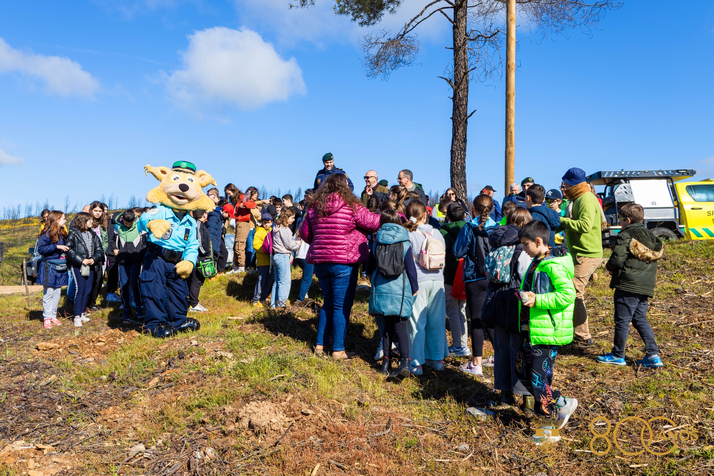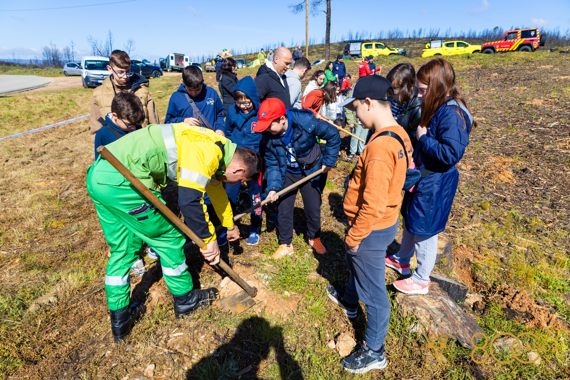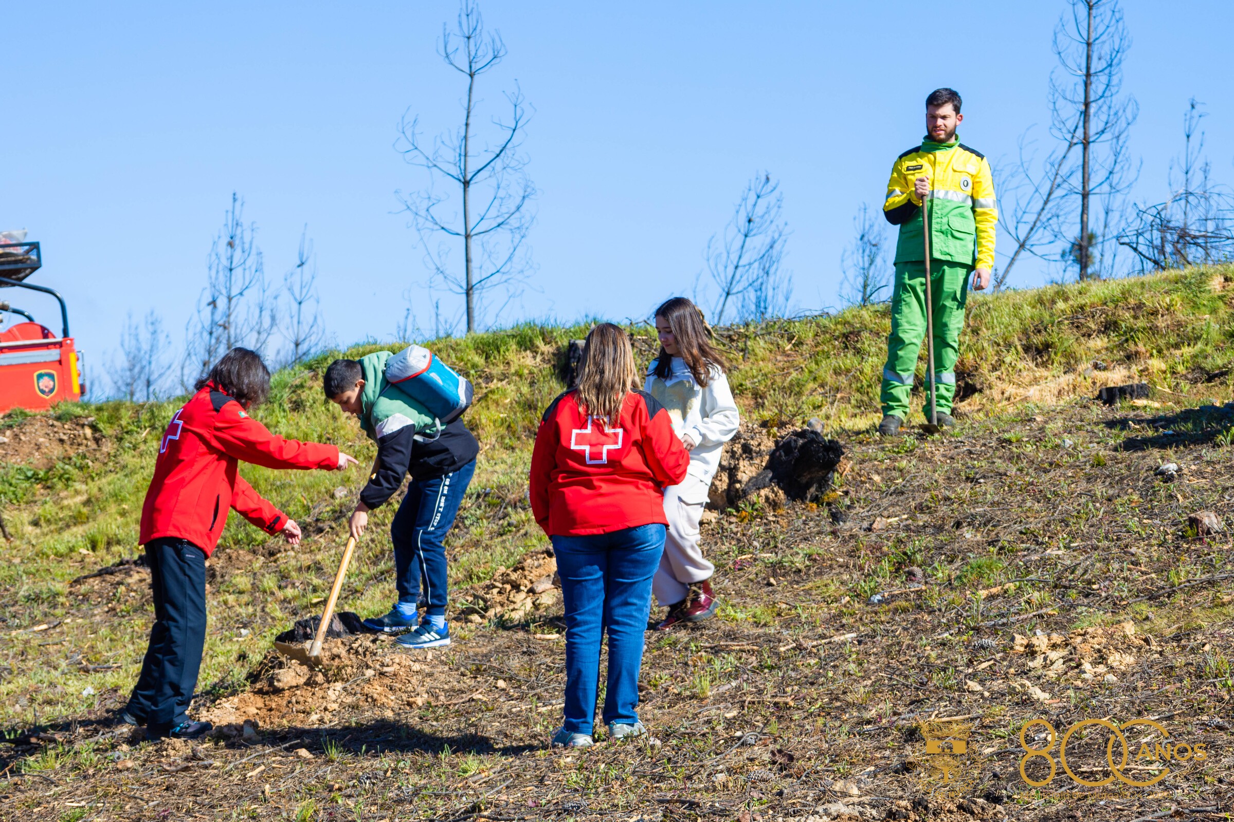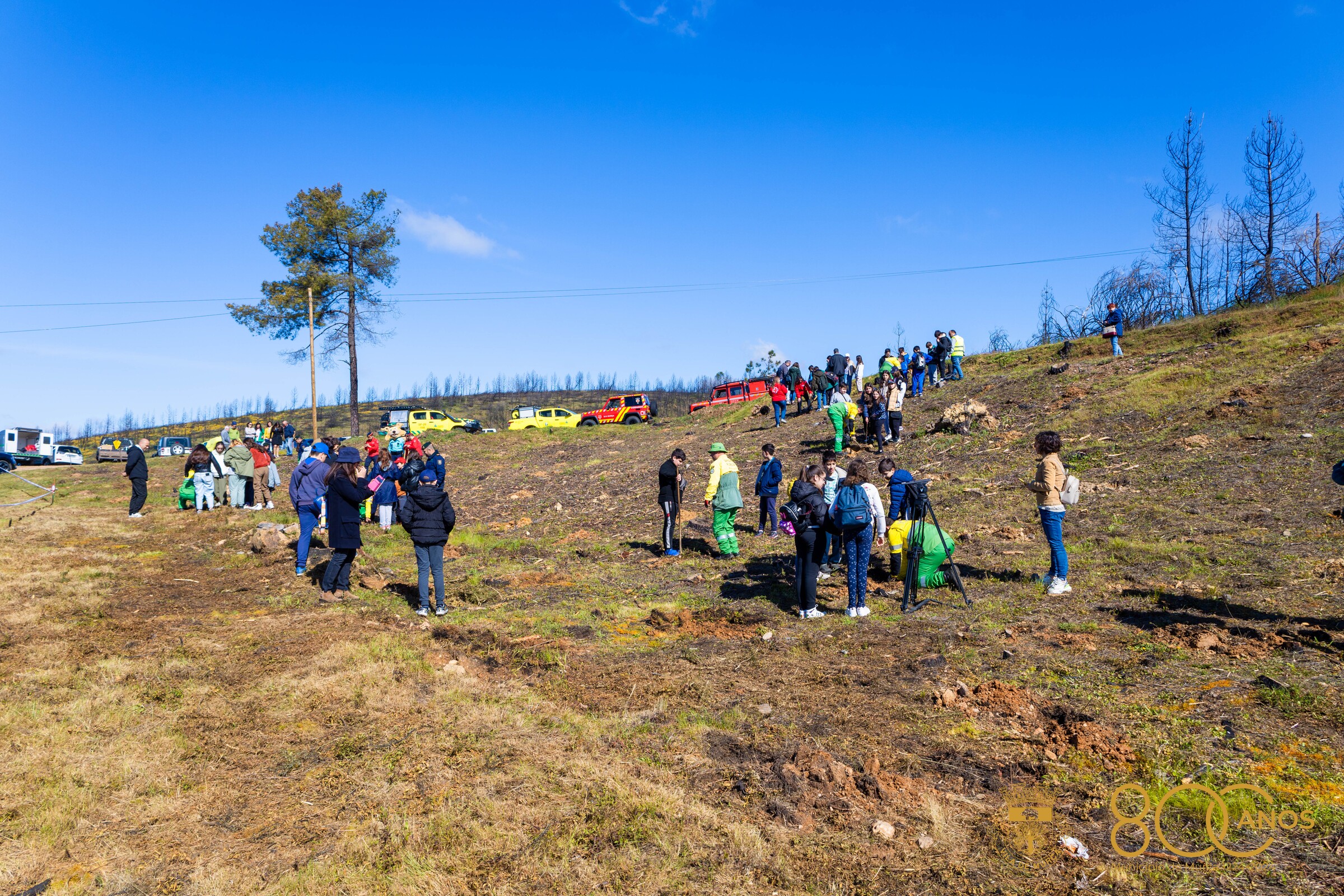 Alunos e professores, guardas, bombeiros, sapadores florestais, Presidente da Assembleia Municipal, Presidente da Câmara, membros do Executivo, elementos do município e da Cruz Vermelha juntaram-se esta manhã na zona de Mascanho, concelho de Murça, uma área atingida pelo grande incêndio que ocorreu em julho de 2022 e devastou 7 mil hectares, 4 mil dos quais de povoamento florestal.