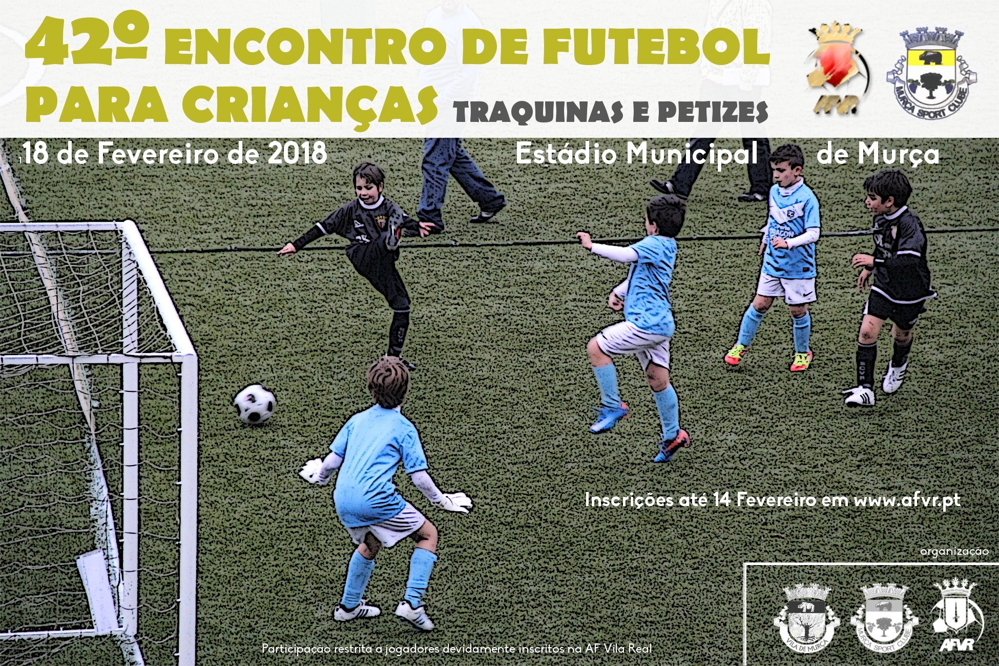 No próximo dia 18 de fevereiro do corrente ano, o Estádio Municipal de Murça será uma vez mais o palco para a realização do 42.º Encontro de futebol para crianças, dos escalões de traquinas e petizes.
