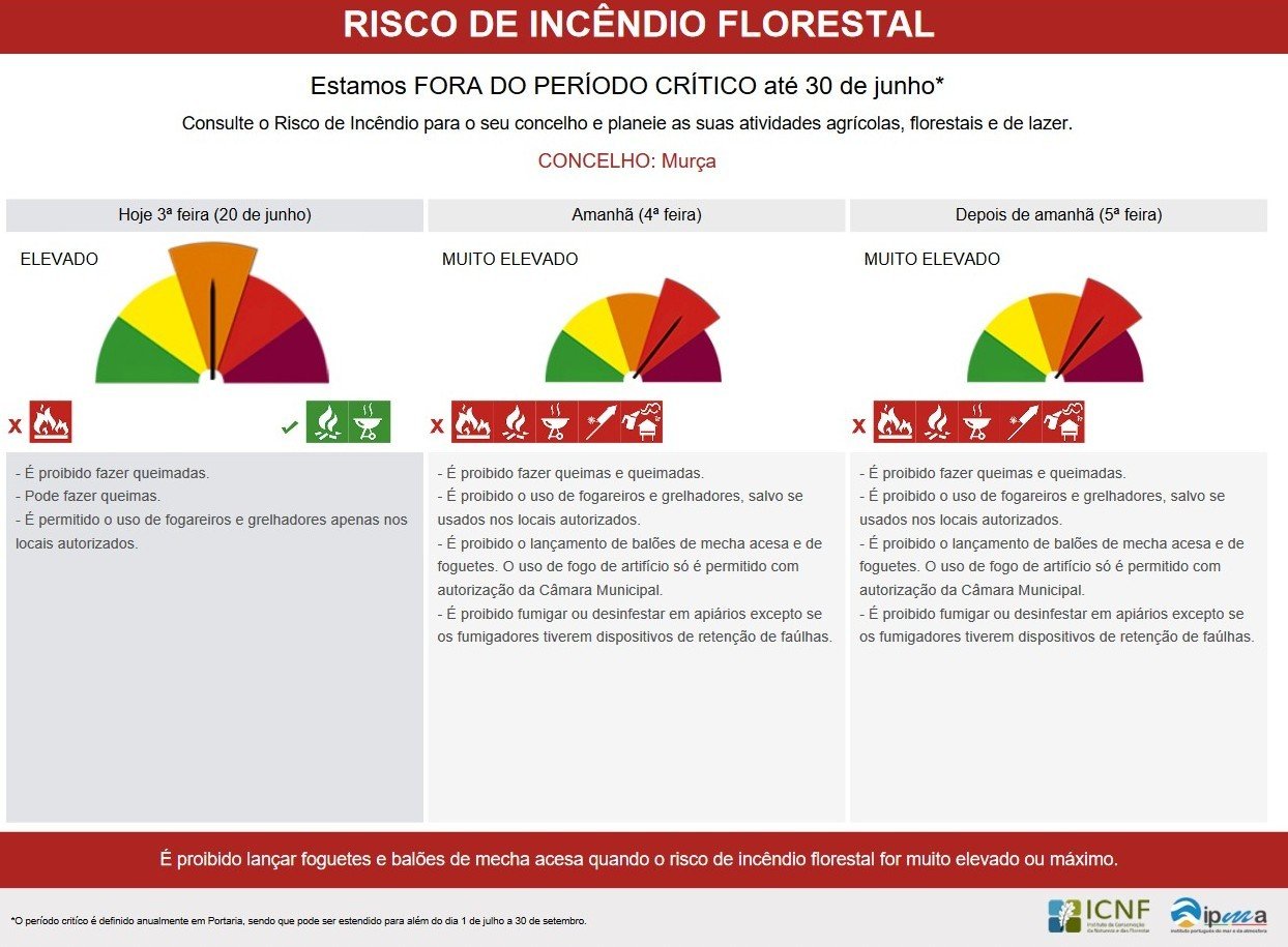- ALERTA: Risco de Incêndio Florestal de 20 a 22/06
