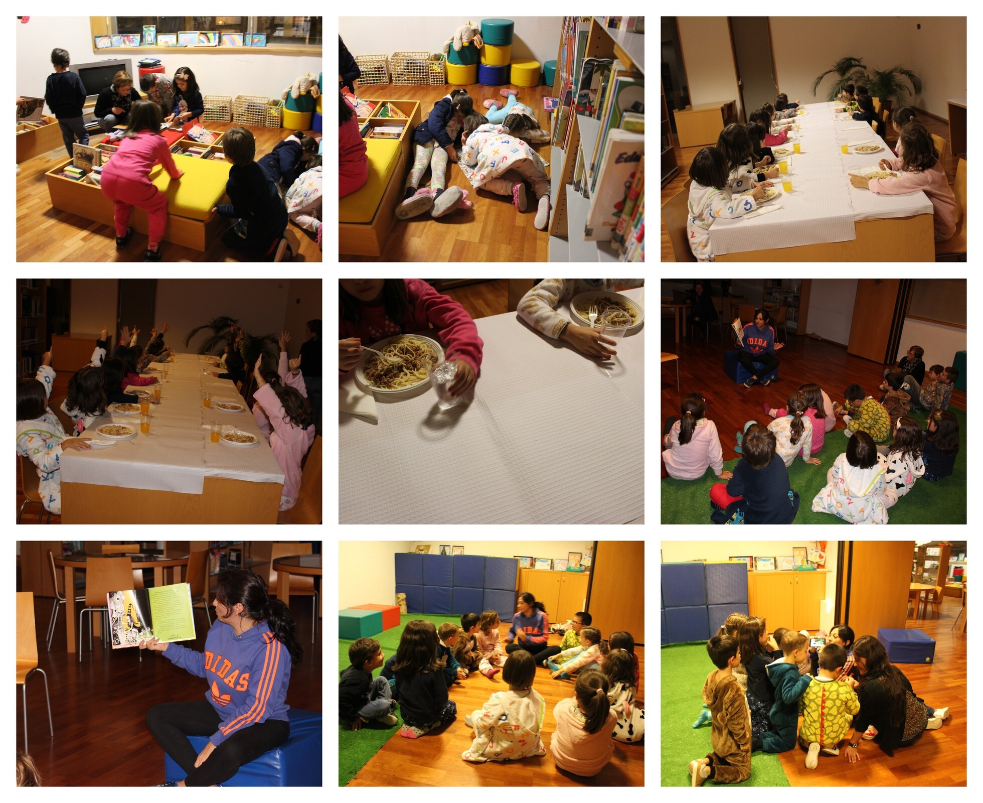 A atividade (concebida para os alunos do 1.º ano de escolaridade) iniciou, com um pequeno convívio na sala infantojuvenil. De seguida, proporcionou-se às crianças um jantar convívio, no qual se serviu massa à bolonhesa e gelatina.