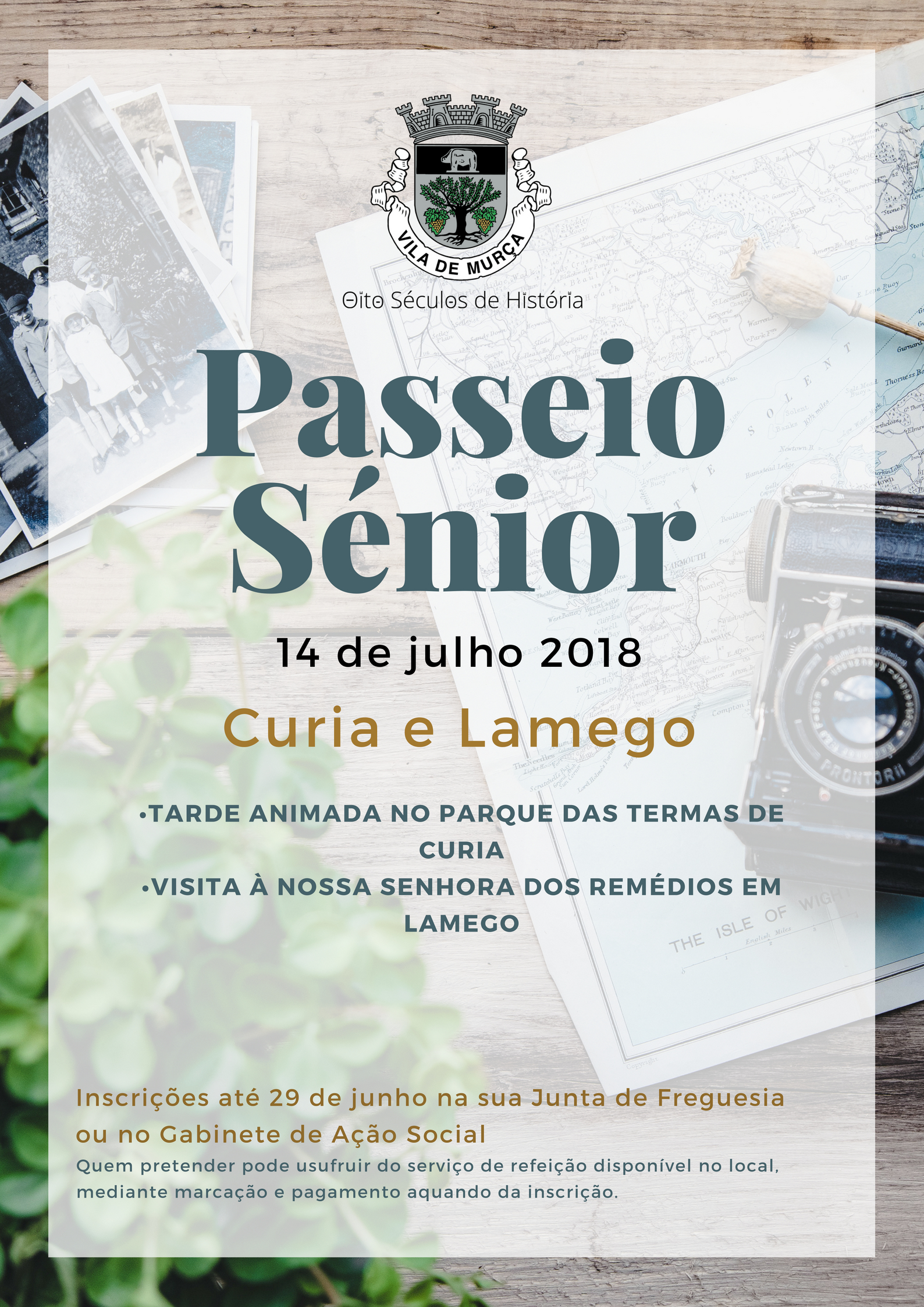 A Câmara Municipal de Murça organiza no próximo dia 14 de julho, um passeio às termas da Curia e Nª. Senhora dos Remédios em Lamego, destinado à população sénior do concelho.