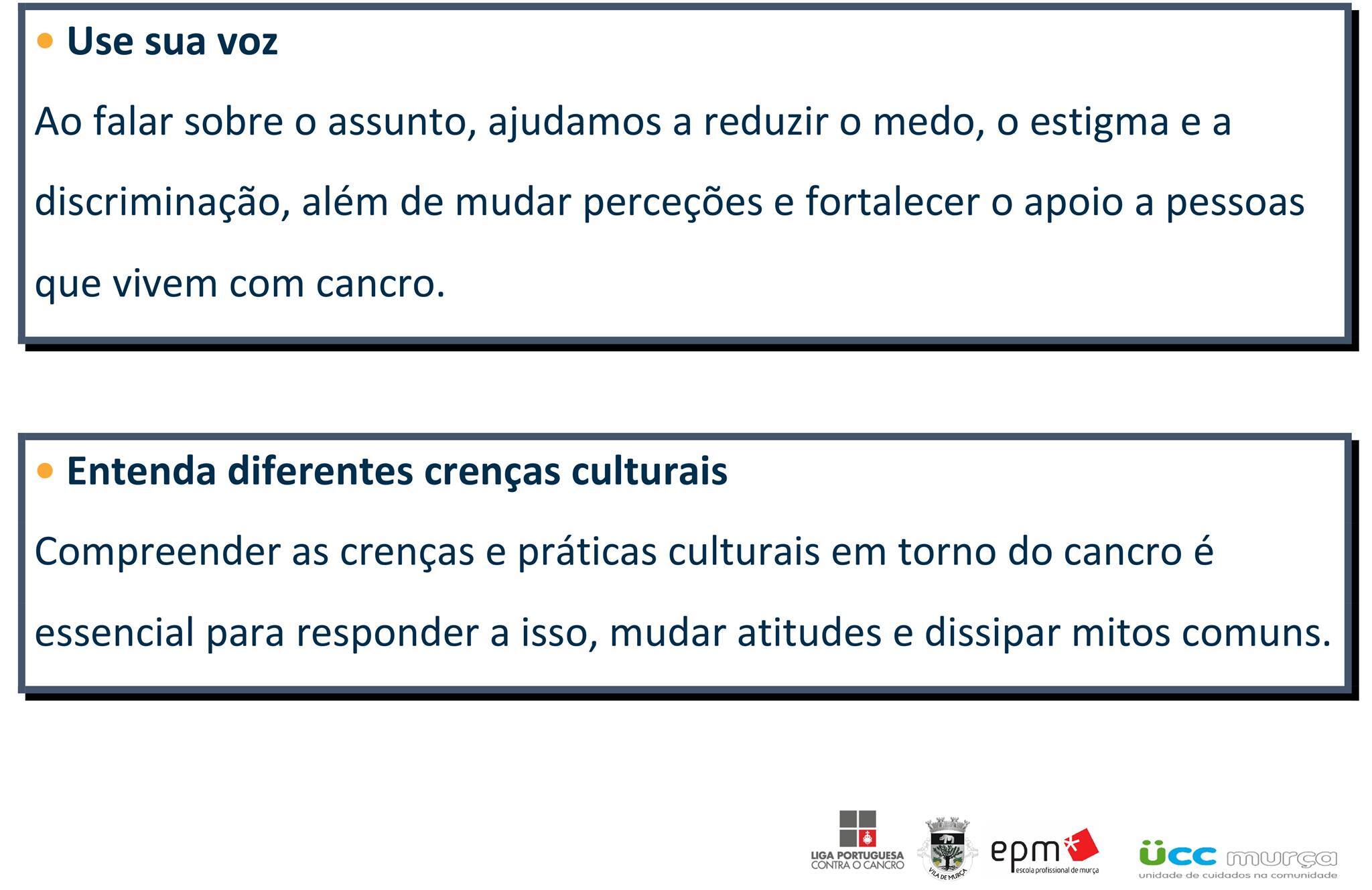 Ao falar sobre o assunto, ajudamos a reduzir o medo, o estigma e a discriminação, além de mudar perceções e fortalecer o apoio a pessoas que vivem com cancro.
