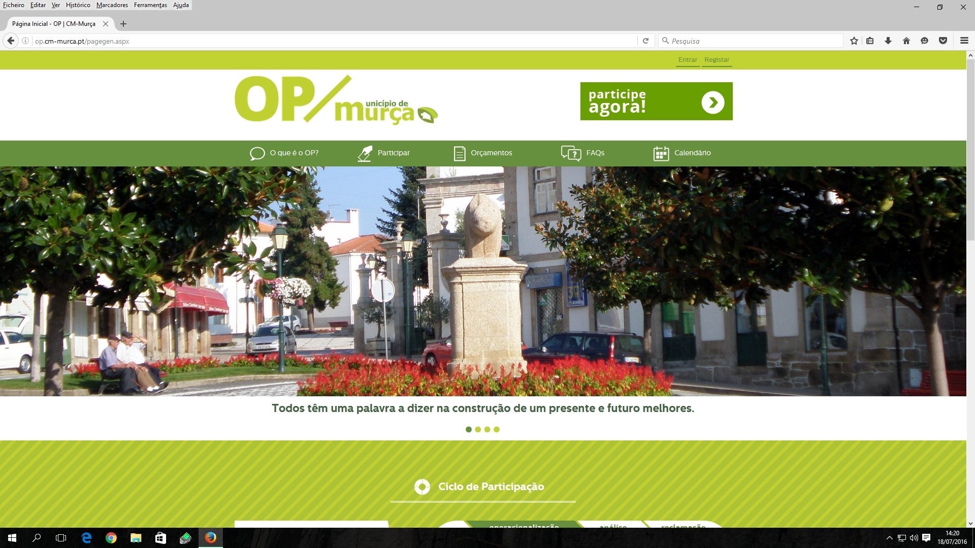 Está a decorrer uma nova etapa do Orçamento Participativo (OP) para 2017, promovido pelo Município de Murça, através do qual os murcenses, de forma democrática e voluntária, terão a oportunidade de participar, escolhendo o destino dos investimentos públicos. Nesta fase, que decorre de 1 a 31 de julho, a população do concelho poderá apresentar propostas nas áreas de competência do município que incidam sobre investimentos de âmbito coletivo., com uma verba destinada de vinte mil euros.