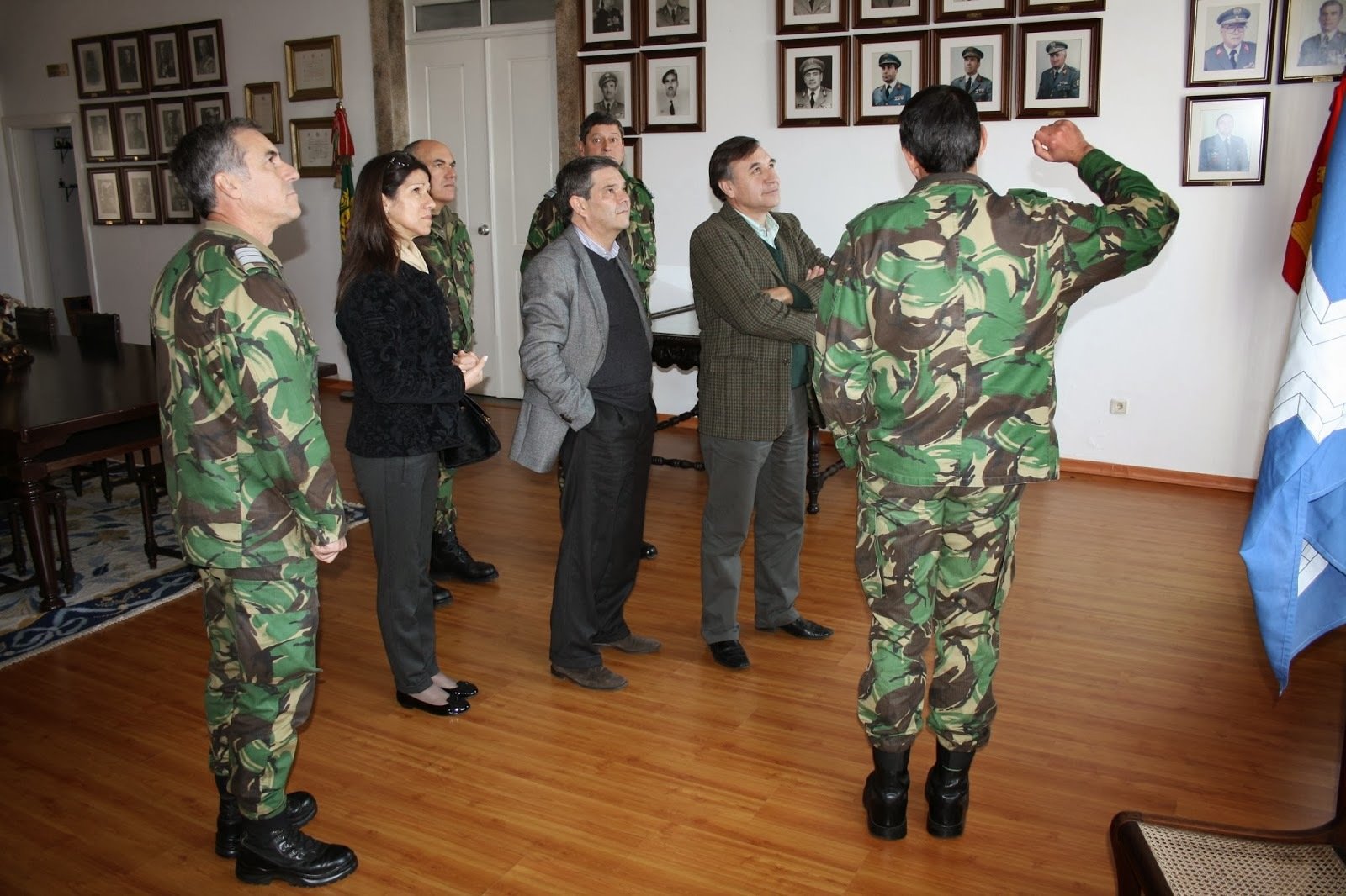Após a receção no gabinete do Exmo. Comandante da Brigada, MGen Aguiar Santos, seguiu-se a visita pelas instalações do Aquartelamento de Sant’Anna, que contemplou uma passagem pela Coleção Visitável e pela Biblioteca, e um brífingue na Sala de Conferências.