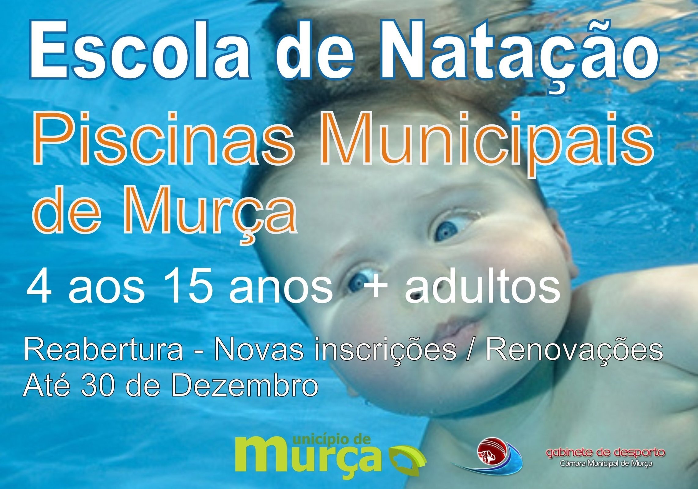 A Escola de Natação da Câmara Municipal de Murça, proporciona todos os anos a prática de várias modalidades aquáticas a mais de duas centenas de pessoas de todas as idades. Neste sentido o Gabinete de Desporto, informa que se encontram abertas até ao próximo dia 30 de dezembro as inscrições de ingresso ou renovação. Para esse efeito devem contactar este gabinete no Pavilhão Desportivo ou Piscinas Municipais.