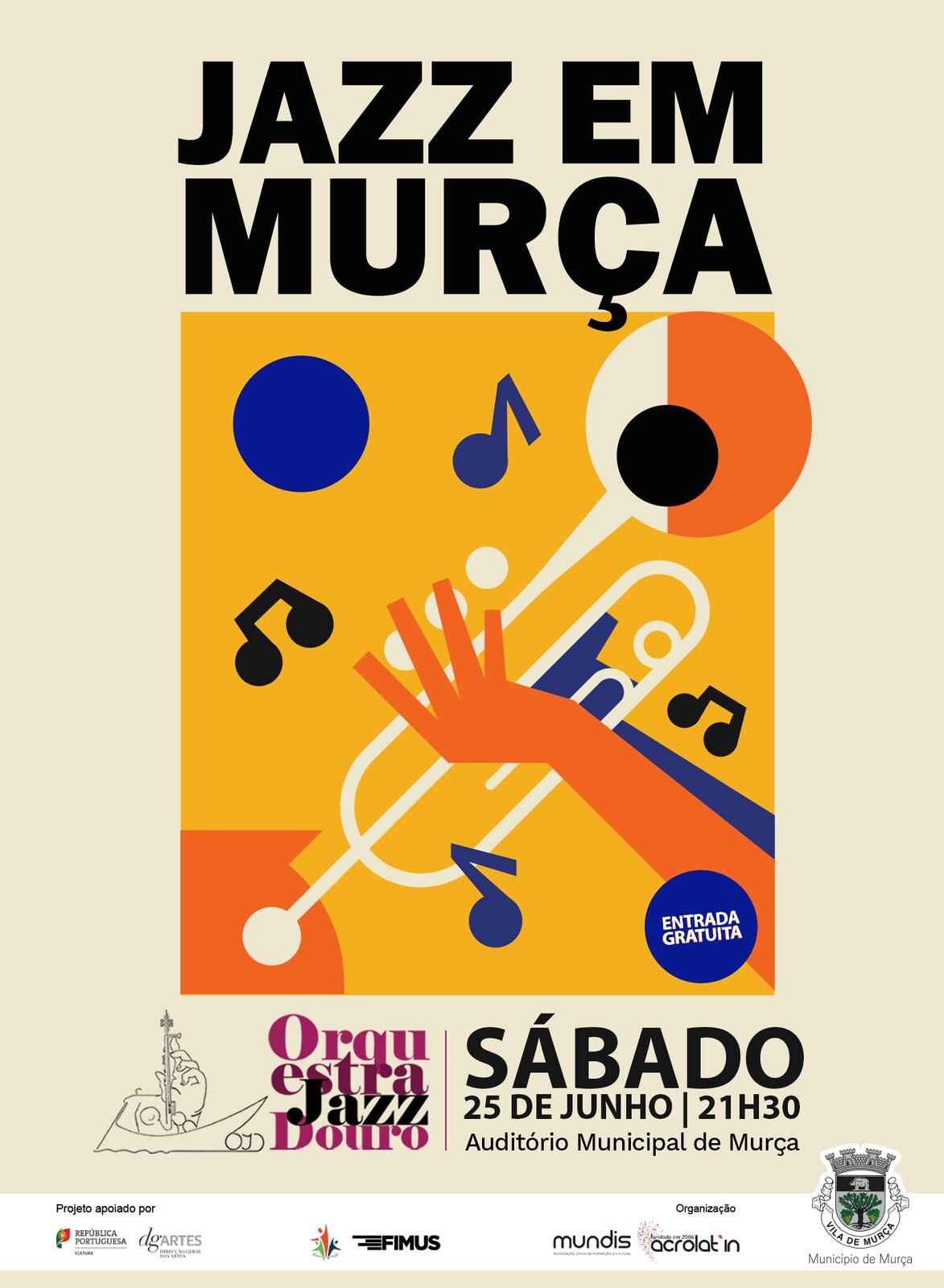 A Orquestra de Jazz do Douro, realiza em Murça, no próximo sábado, dia 25 de junho, um concerto musical no âmbito da apresentação nacional do projecto “Jazz in Douro”. O espetáculo é organizado pelo Município de Murça, e acontece no Auditório Municipal, a partir das 21h30.