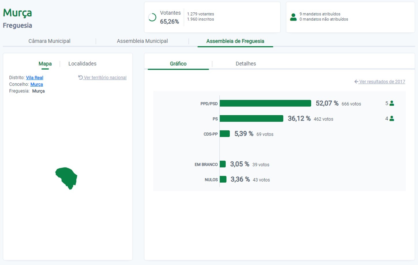 Resultados das Eleições Autárquicas 2021 - Assembleia de Freguesia de Murça