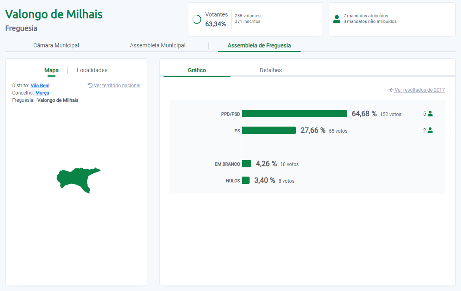 Resultados das Eleições Autárquicas 2021 - Assembleia de Freguesia de Valongo de Milhais