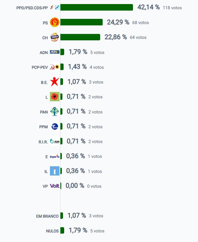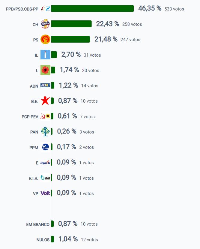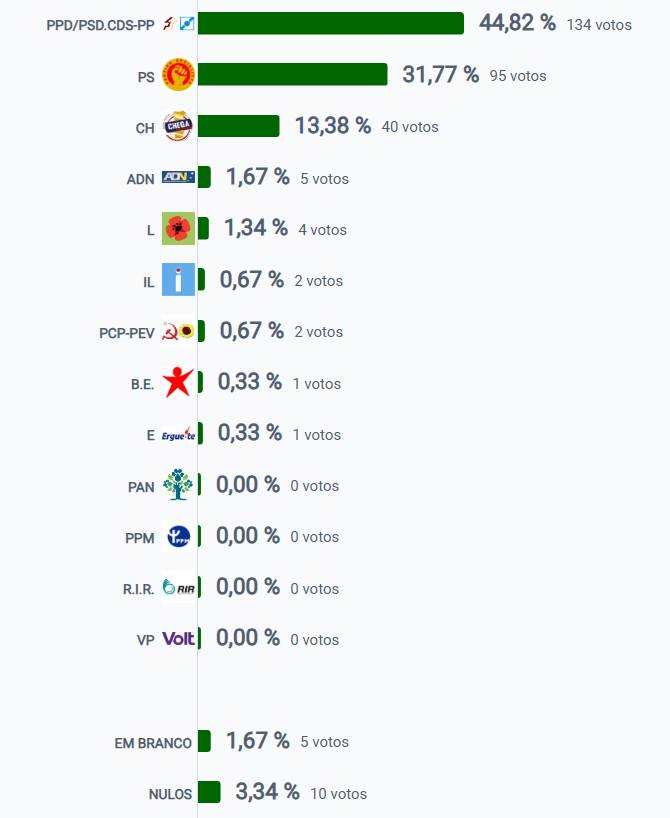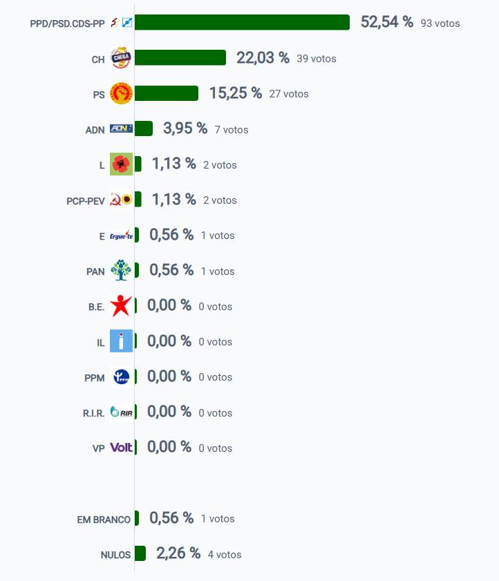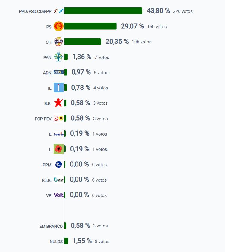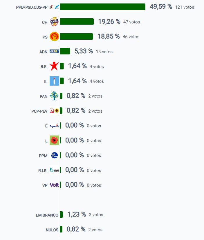 | Força política | Percentagem | Número de votos |