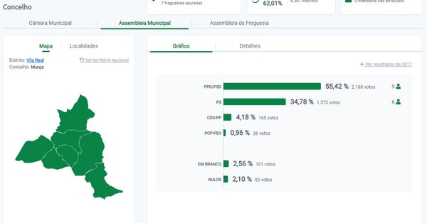 Resultados das Eleições Autárquicas 2021 - Assembleia de Freguesia de Murça