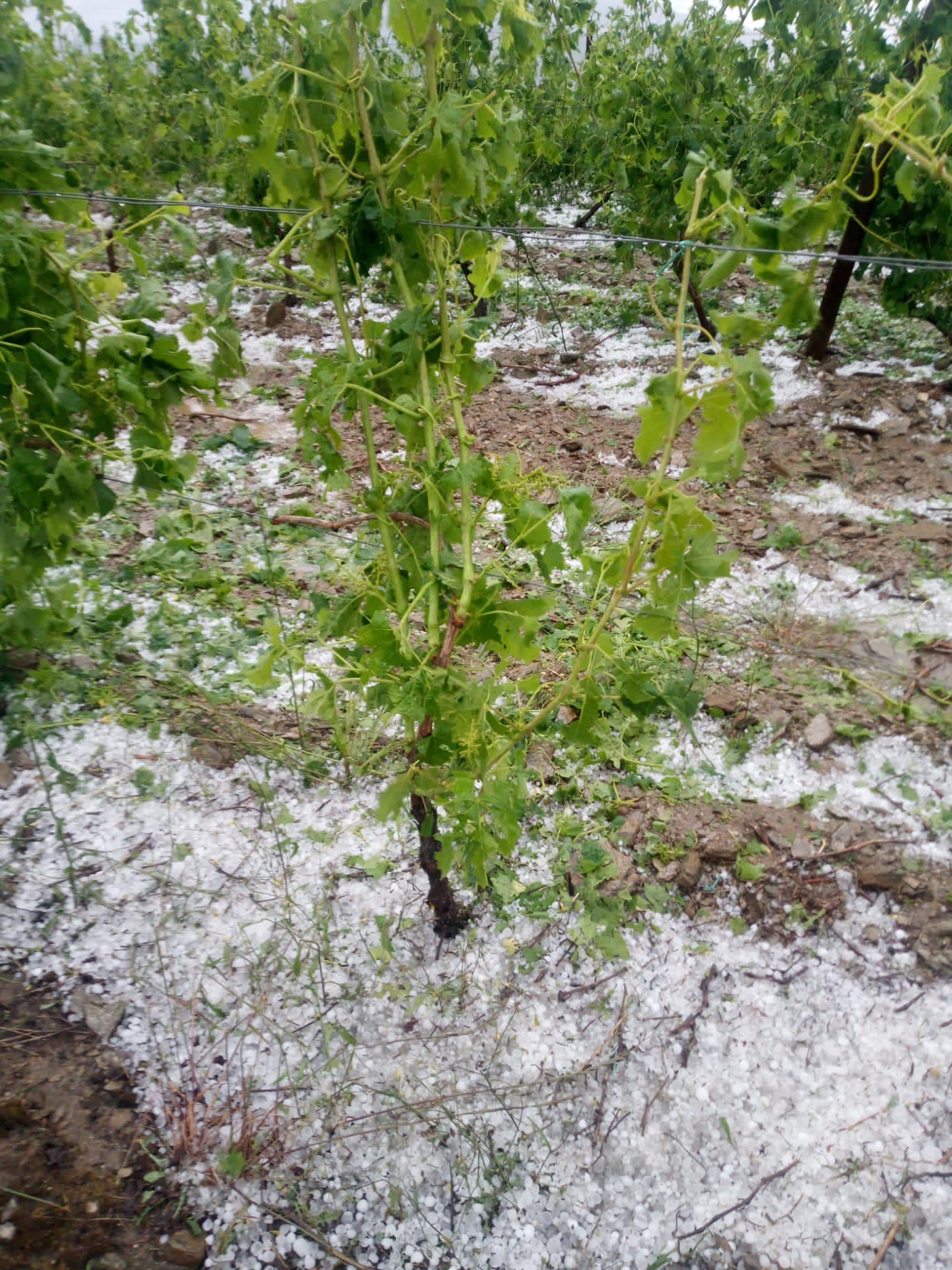É recomendado, após a queda de granizo, a aplicação de um tratamento à base de cálcio para a cicatrização das videiras.
